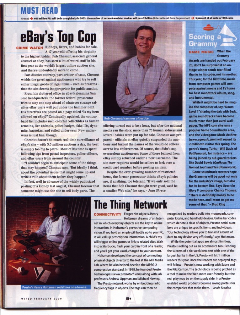 Videogame Music Archive mentioned in article "Scoring a Grammy" by Brad King, as he refers to this site and its hit counter near 2,000,000 in Wired. Local scanned copy of page available here.